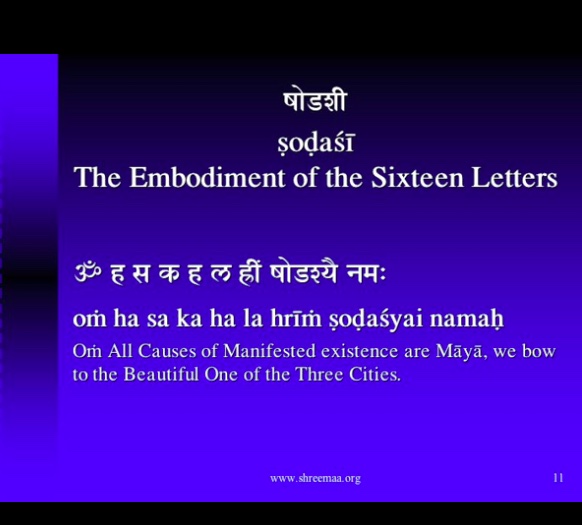 Click Shodashi Mool Mantra to listen to Swamiji chant the Shodashi Mool Mantra.