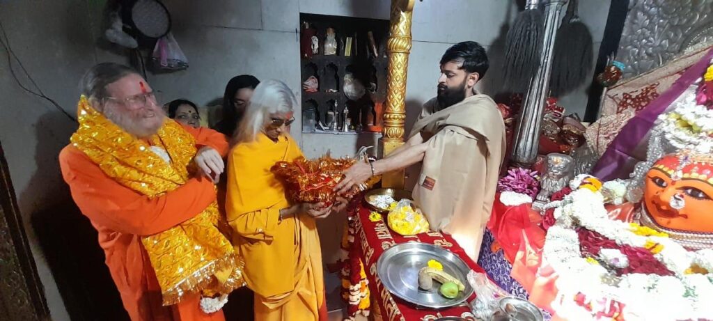 At Harsiddhi Maa’s abode, the energy transformed—from fierce transcendence to nurturing grace. Here, Swamiji and Shreemaa offered prayers and performed Puja, invoking the blessings of the Divine Mother for the well-being, strength, and upliftment of all.