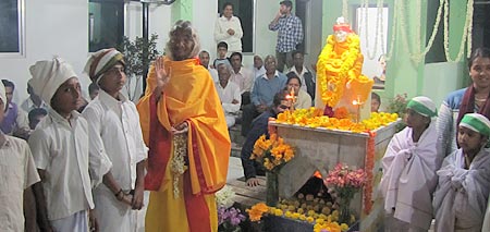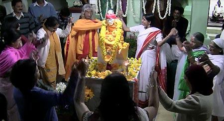 Shree Maa joins the celebration and leads a circle of devotees in a dance around the Sai Baba Murti. See previous section
