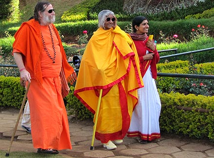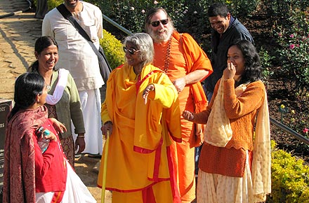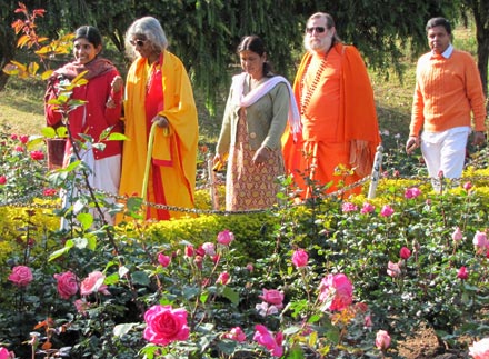 After their morning puja, Shree Maa and Swamiji along with their host Dr. Selvaraj and several devotees enjoyed a morning walk through the local rose garden. Dr. Selvaraj is a renowned organic horticulturalist and everyone enjoyed his knowledgeable commentary on the vast variety of roses in the garden.