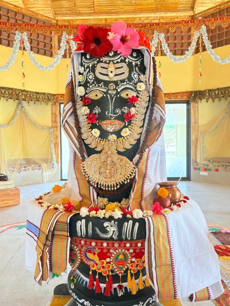 During the preparation due to heavy pouring rain, shreemaa and swamiji decided to perform a Yajna Homa for Surya Devata, the sun god, until the establishment day. Despite the rain, devotees and Shreemaa created beautiful Alpanas on the platform where Napeshwar now stands. The puja took place in the morning at around 11:00 am IST, preceded by Swamiji performing the Homa Yajna.