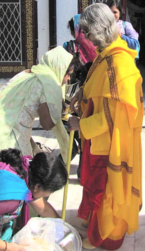 Pilgrims take darshan from Shree Maa and Swamiji after the Chandi