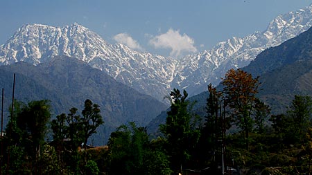 Half way from Palampur to Dharamshala, Shree Maa and Swamiji went to the Chamunda Temple for a morning recitation of the Chandi. Many devotees visiting the temple sang devotional songs with strong bhava.