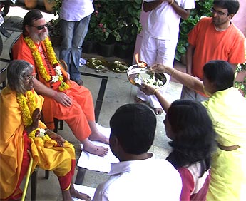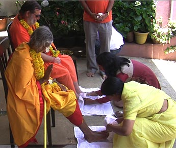 A ceremonial reception – washing the Guru’s feet and offering light after a long journey
