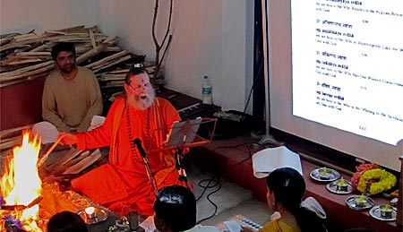 Swami Satyananda blends ancient Vedic fire ceremony with modern portable technology – an iPad and a projector