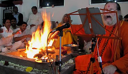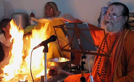 Swamiji worships the Yantra before lighting the fire