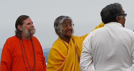 Swamiji, Shree Maa, and Sanjay enjoying the scenery