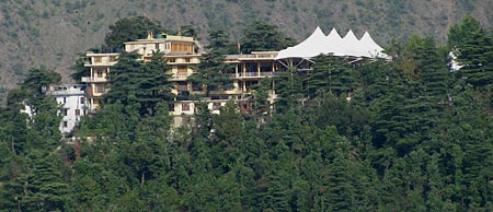 The Dalai Lama’s abode and temple were a little higher up in McLeod Ganj (also called Upper Dharamshala). The white tentlike structure is part of the temple or Tsuglakhang and the Dalai Lama’s residence is close to that.