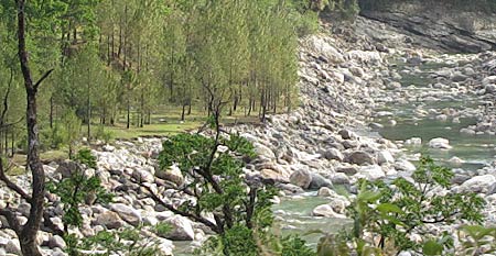 The Ganga flowing beside the Shivananda Ashram.
